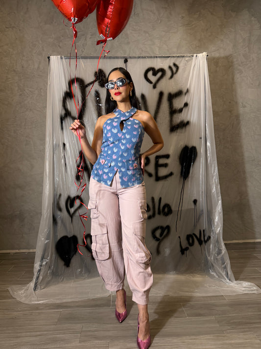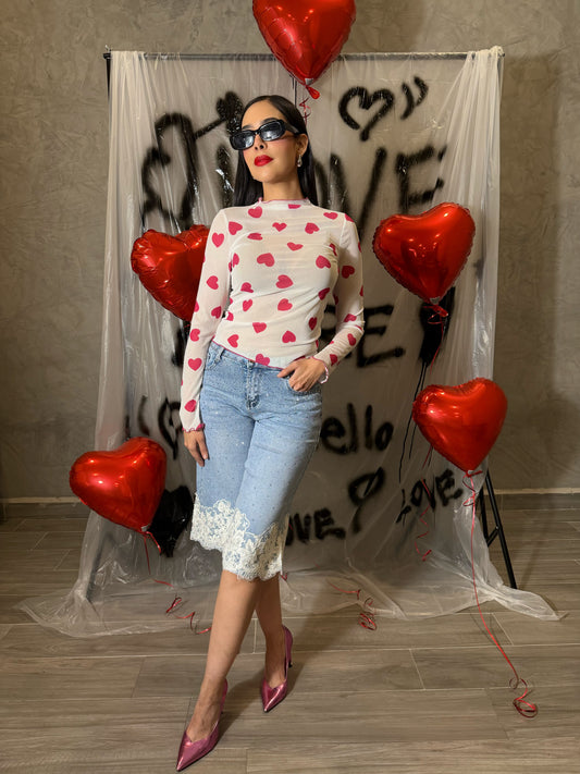 Blusa Denim Corazones