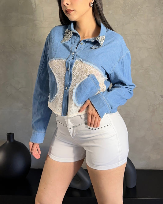 SaleDenim Lace Blouse