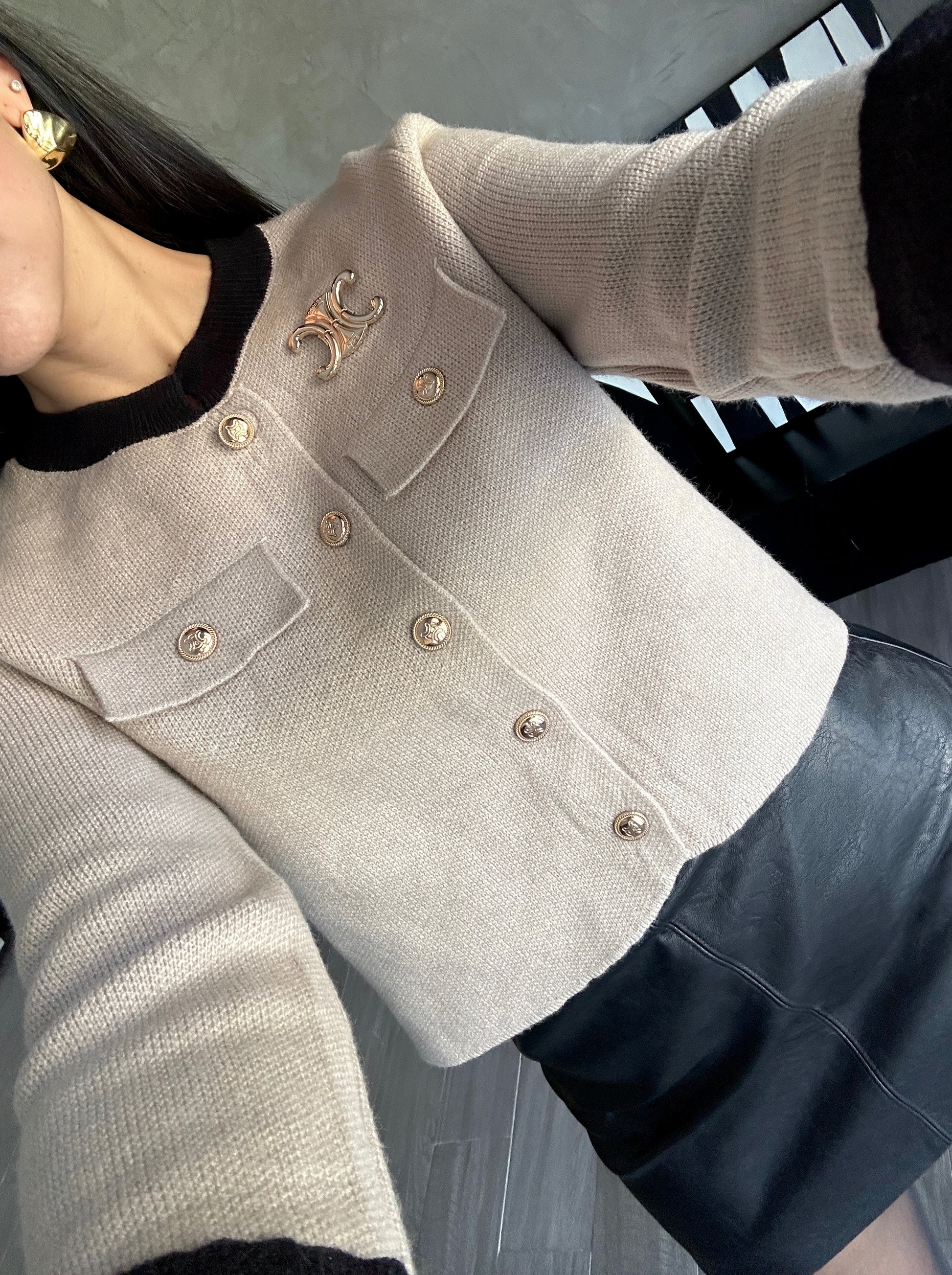 Suéter beige con botones dorados logo Celine.