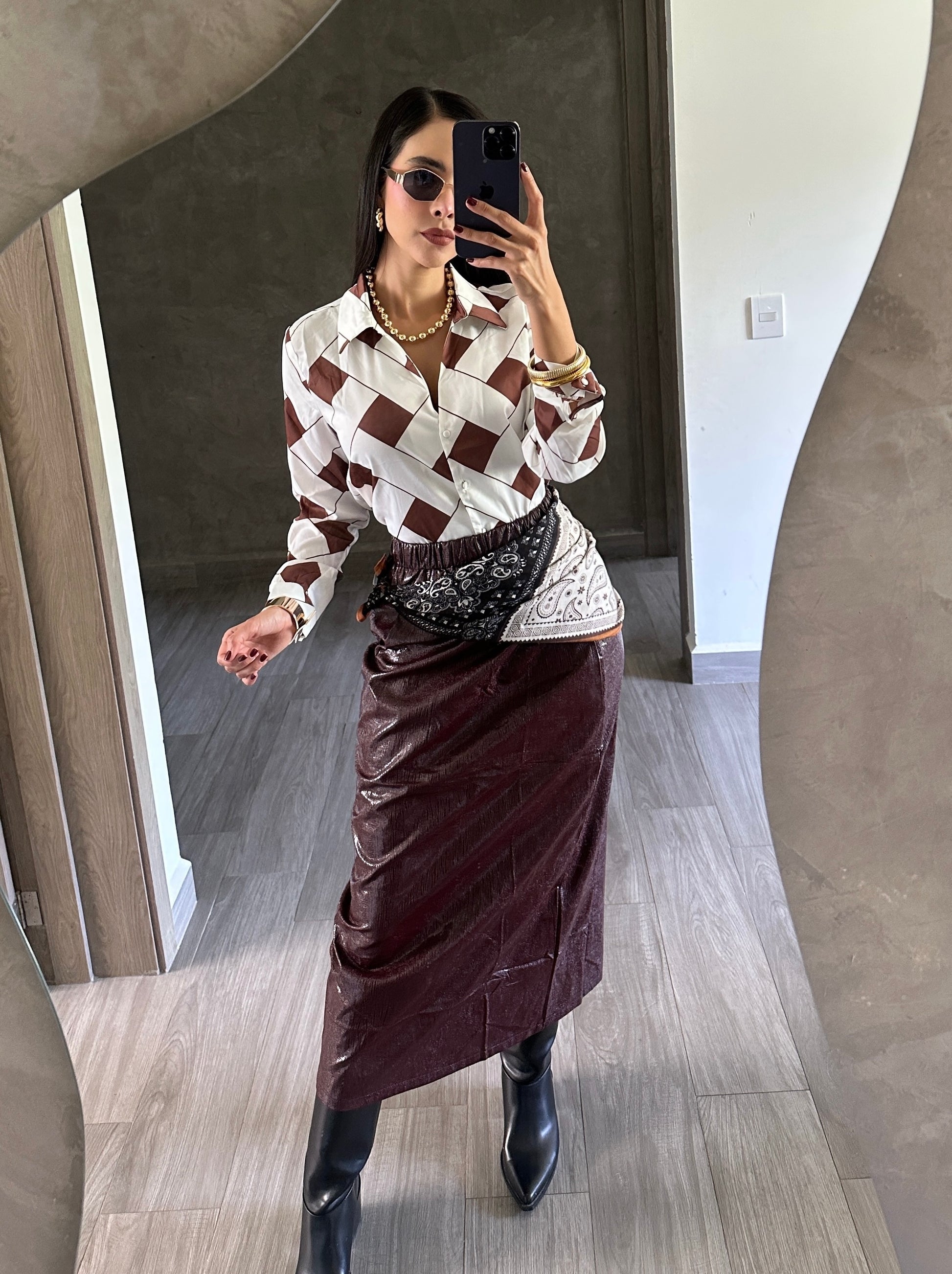 Falda midi color tinto polipiel,